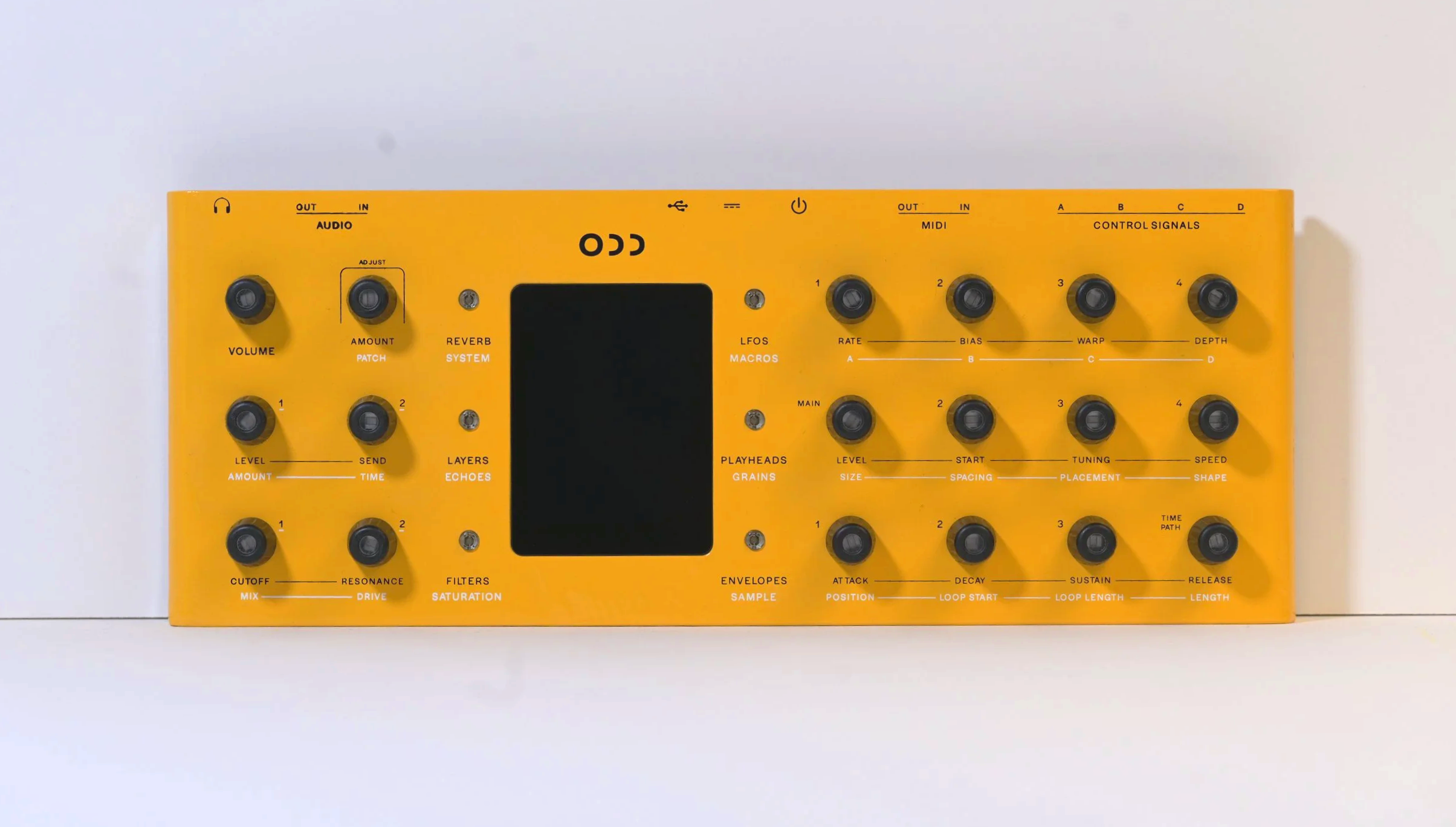 The large touch screen supports gorgeous sound visualizations, colorful representations of the grain synthesis process, and helpful plots of modulation sources and effects. Each module includes auxiliary parameters for refined details that are just one touch away. With the screen and modular organization, Odd-1 provides an unparalleled amount of depth without a hint of menu diving.